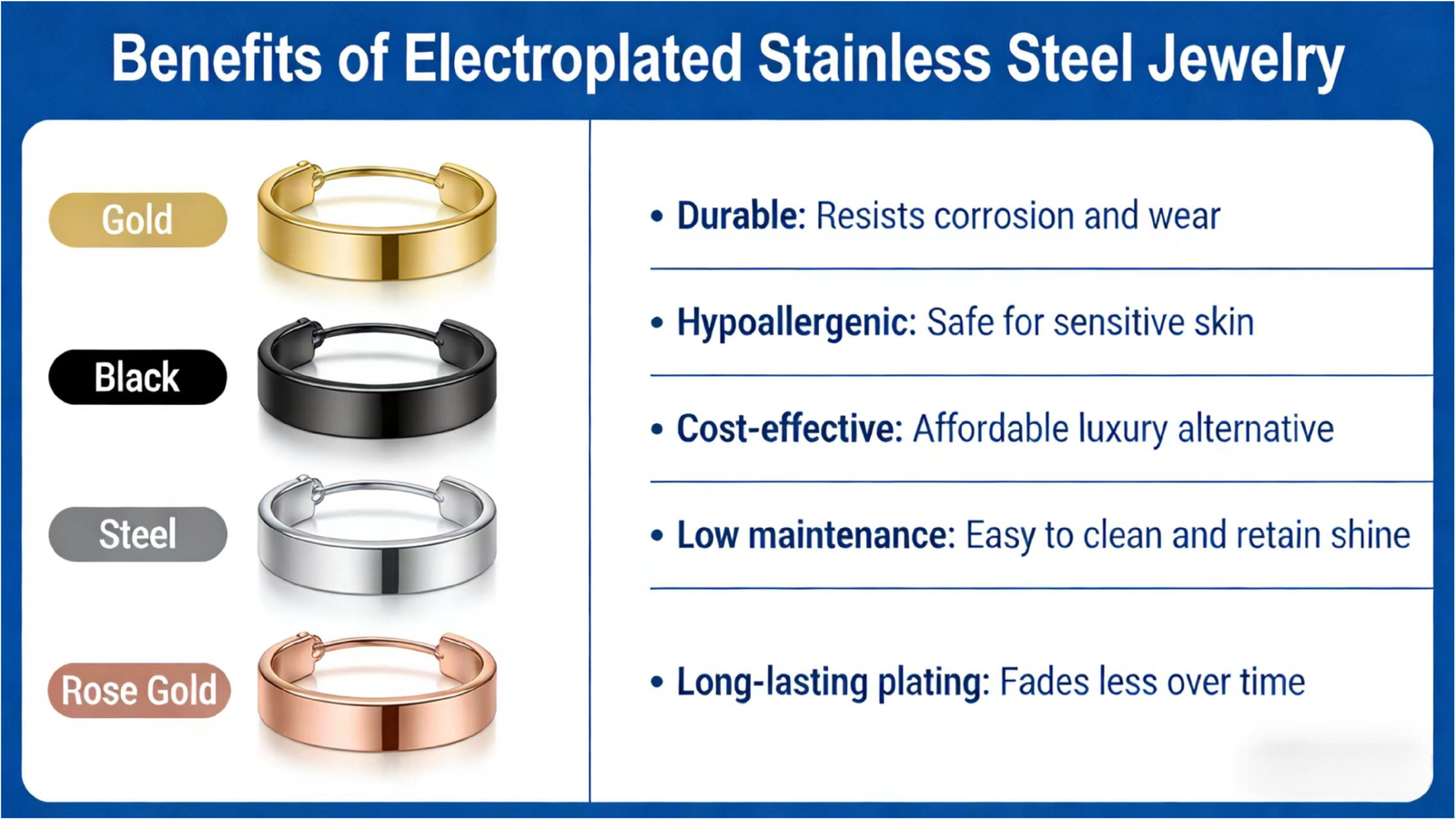 Compared with precious metals like gold and platinum, the electroplating process significantly reduces material costs, delivering exceptional value for money.