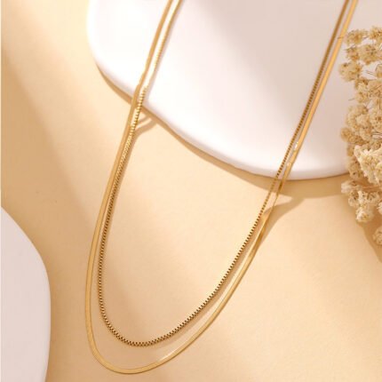 Minimalist Double Layer Herringbone & Box Chain Necklace | 18K Gold-Plated Stainless Steel Jewelry