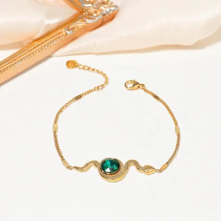 18K Gold-Plated Snake & Emerald Crystal Bracelet | Titanium Steel Luxury Jewelry