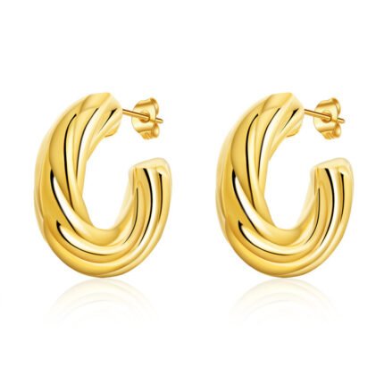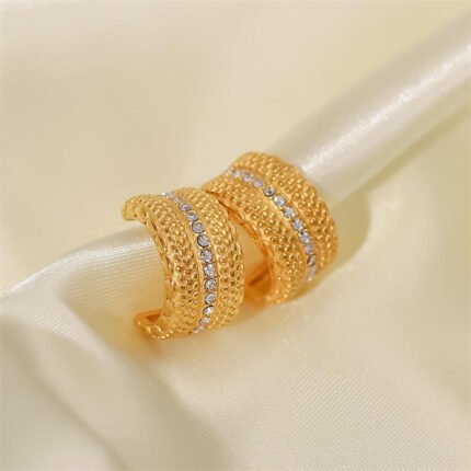 Luxury Gold C-Shaped Zircon Stud Earrings | Textured Hypoallergenic Jewelry
