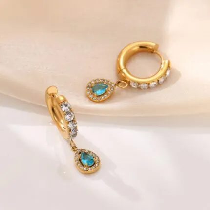 Luxury Geometric CZ Drop Huggie Earrings Set | Gold Stainless Steel Jewelry