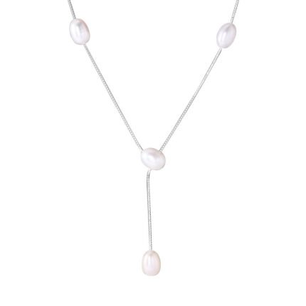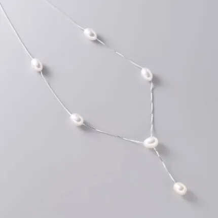S925 Sterling Silver Natural Freshwater Pearl Lariat Necklace | Dainty Bridal Jewelry