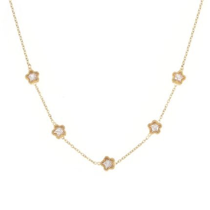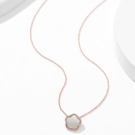 Rose Gold Five-Leaf Clover Mother-of-Pearl CZ Necklace | Hypoallergenic Stainless Steel Jewelry