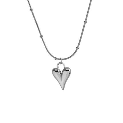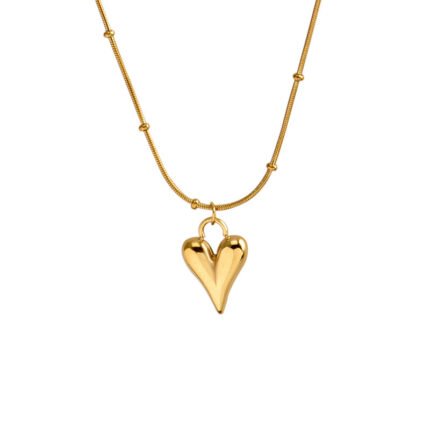 18K Gold-Plated Puffy Heart Snake Chain Necklace | Hypoallergenic Stainless Steel Jewelry