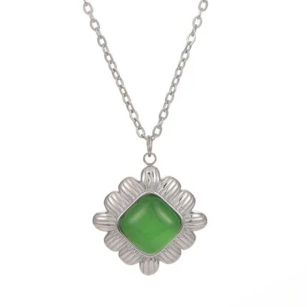 18K Gold/Silver Plated Green Cat’s Eye Floral Pendant Necklace | Stainless Steel Luxury Jewelry for Women