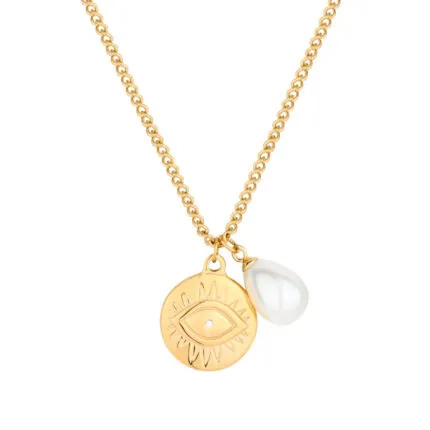 18K Gold-Plated Starfish & Evil Eye Pearl Pendant Necklace Set | Stainless Steel Coastal Jewelry