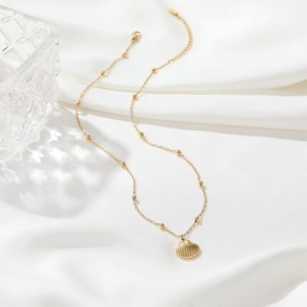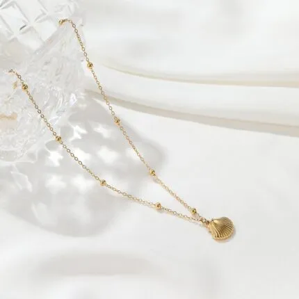 18K Gold-Plated Seashell Pendant Layered Necklace | Tarnish-Resistant Titanium Steel Jewelry