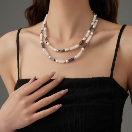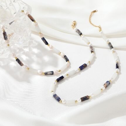 Natural Stone Beaded Choker Necklace | 18K Gold-Plated Titanium Steel Jewelry