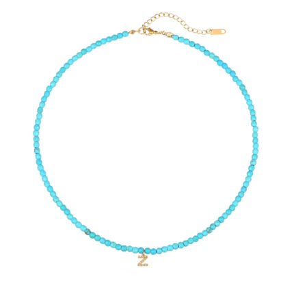 Natural Turquoise Beaded Choker with Initial Z CZ Charm | 18K Gold-Plated Stainless Steel Jewelry