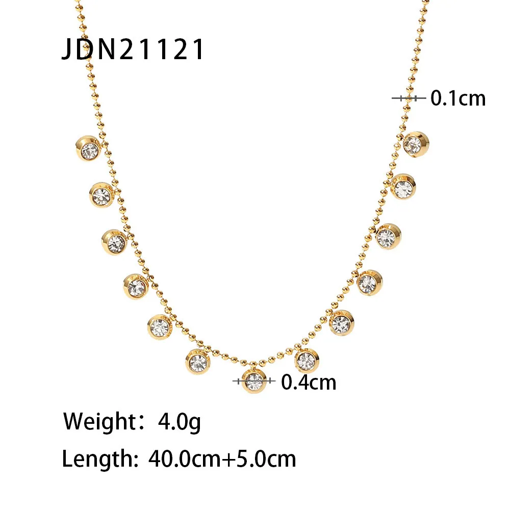 18K gold-plated stainless steel choker with bezel-set CZ fringe drops. Hypoallergenic, tarnish-resistant, and adjustable—perfect for delicate, luminous everyday styling and layering.