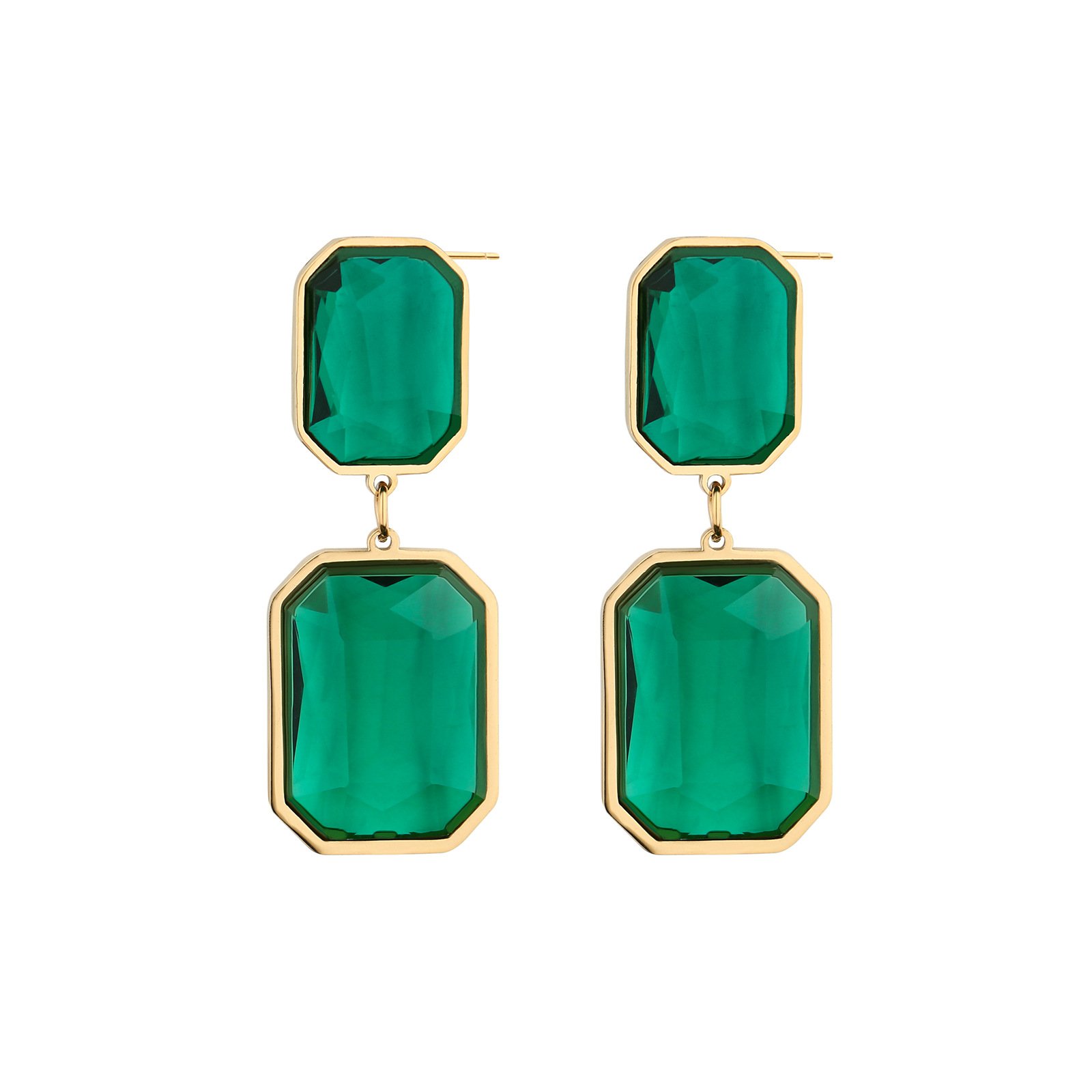 18K gold-plated titanium steel earrings with rich emerald crystal accents, available in multiple vintage and modern styles. Hypoallergenic, tarnish-resistant, perfect for high-end elegant styling.