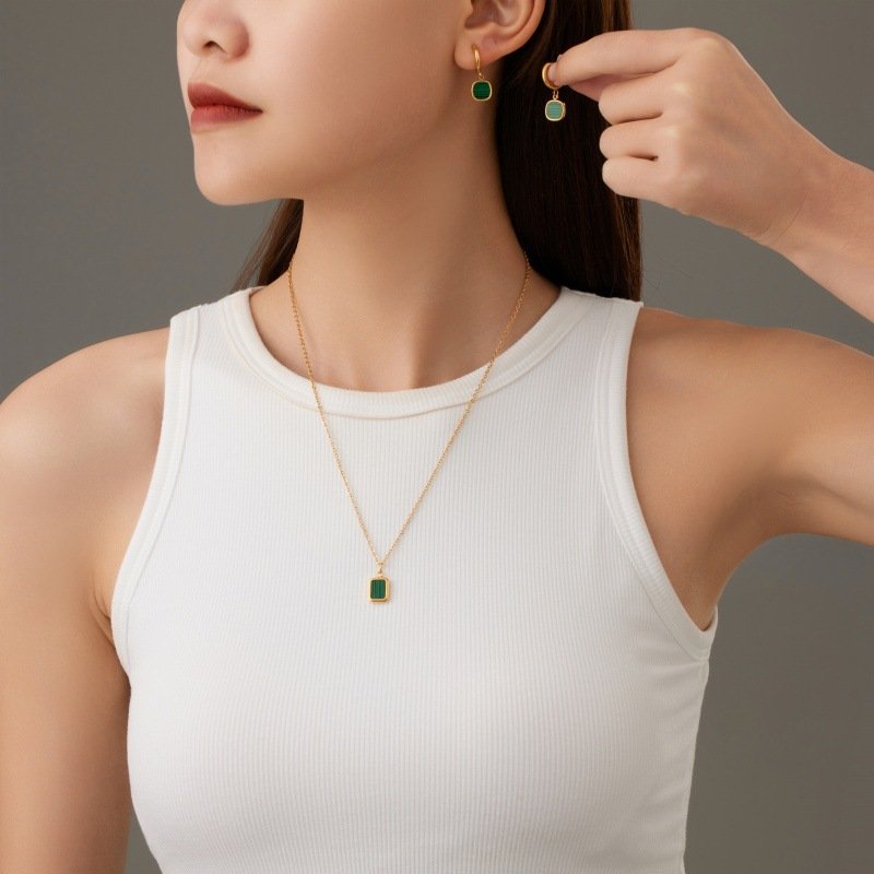 Be the first to review “18K Gold-Plated Malachite Square Pendant Necklace | Minimalist Stainless Steel Jewelry for Women” Cancel reply