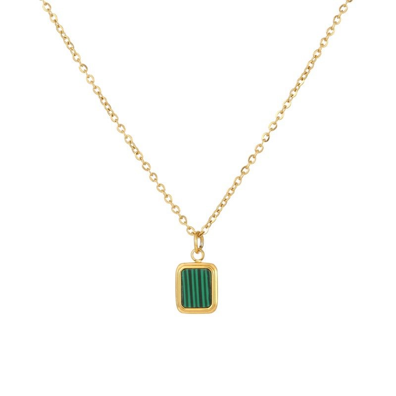 18K gold-plated stainless steel necklace with a square malachite (watermelon-stripe) pendant. Hypoallergenic, tarnish-resistant, and minimalist—perfect for elegant everyday styling and layering.