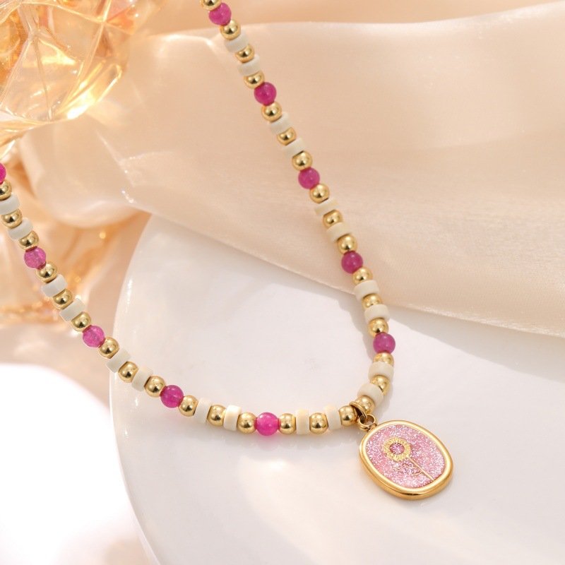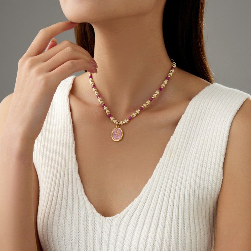Bohemian Green Aventurine Beaded Titanium Steel Necklace