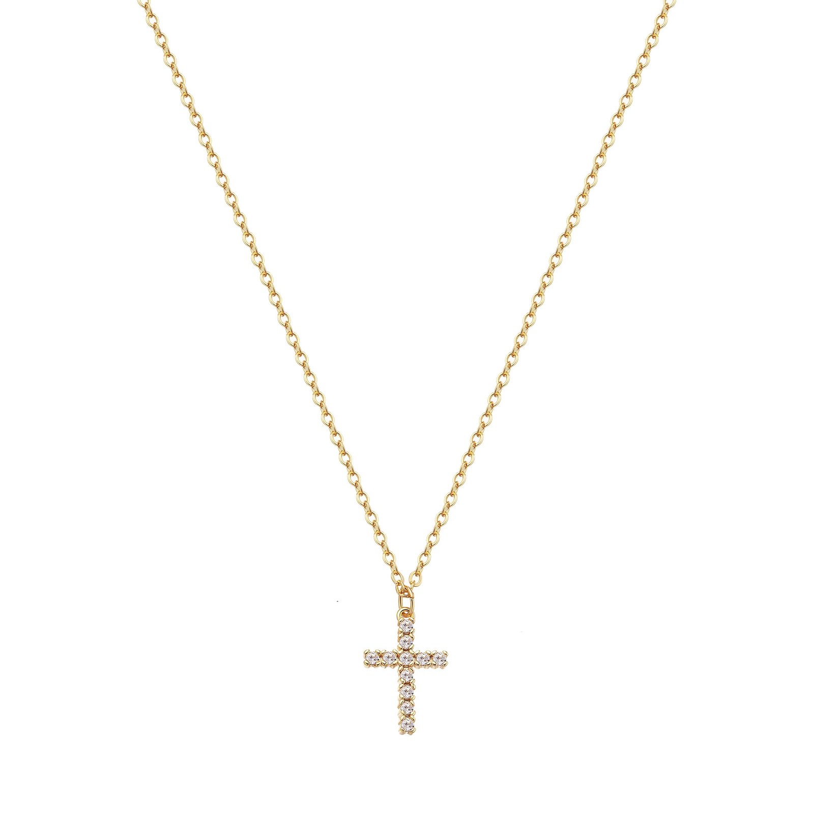 18K gold-plated titanium steel cross pendant, fully encrusted with sparkling zircon. Hypoallergenic, tarnish-resistant, and ideal for minimalist high-end styling.