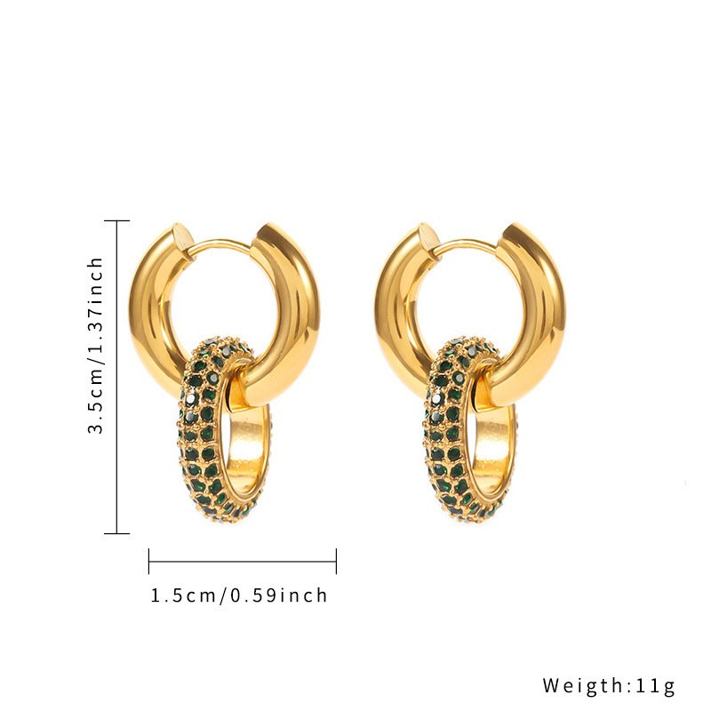 These bold huggie hoop earrings feature a striking double-hoop design: a sleek, polished gold-toned stainless steel hoop paired with a smaller hoop fully encrusted with vibrant black crystals. Crafted from premium stainless steel, they are hypoallergenic, tarnish-resistant, and perfect for adding a touch of glamorous edge to any outfit.