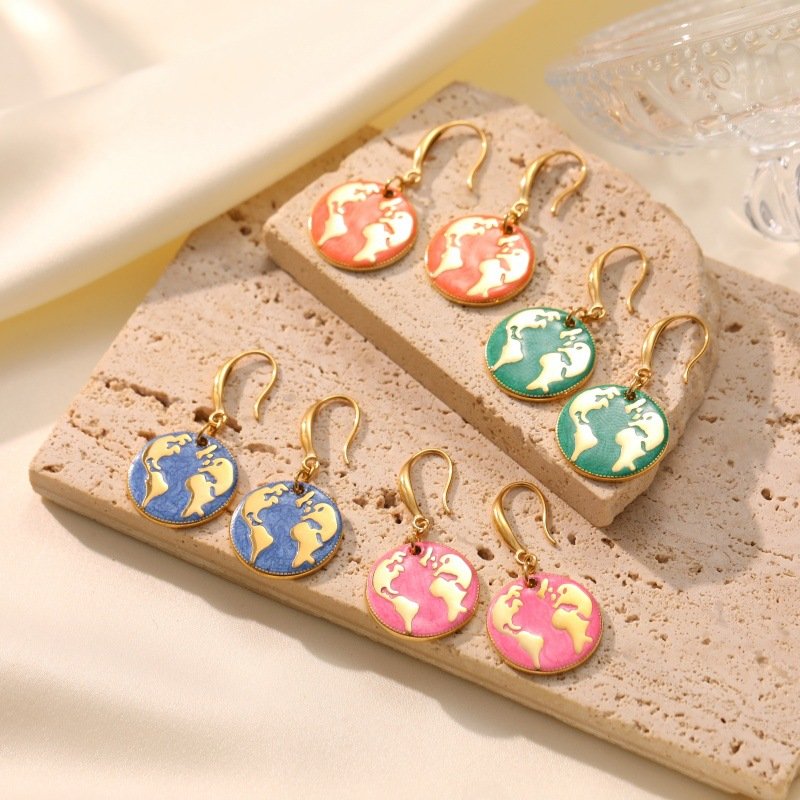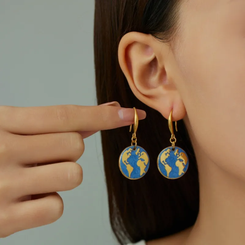 Be the first to review “Enamel Globe Drop Earrings for Women | Niche Stainless Steel Jewelry” Cancel reply