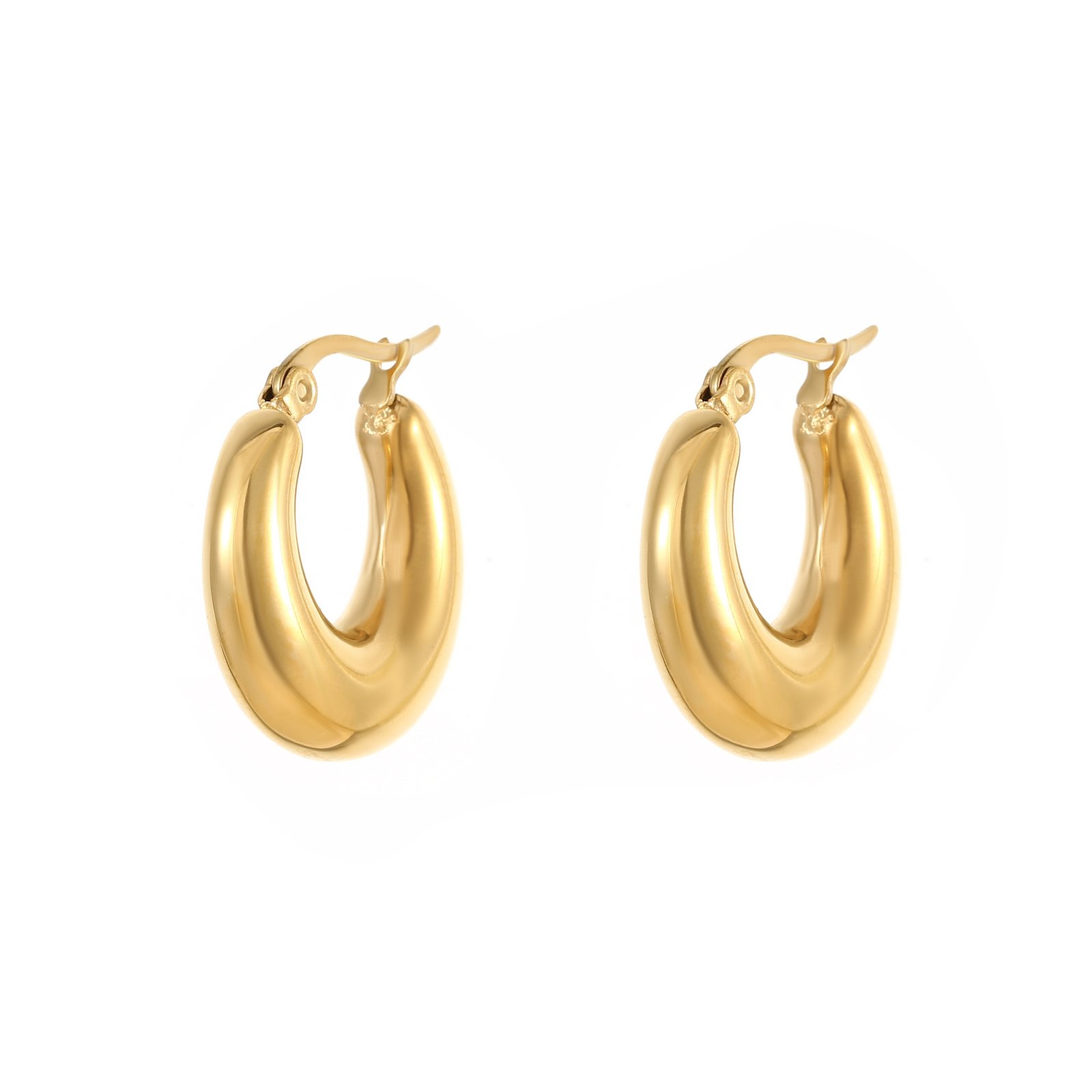 Blend elegance and versatility with these premium gold earrings, crafted from premium gold-toned stainless steel. Each earring features a sleek minimalist design with a smooth polished finish, creating a soft yet stylish look. Hypoallergenic, tarnish-resistant, and lightweight, they are designed for all-day comfort. Perfect for elevating casual outfits, office looks, or special occasions—this versatile pair effortlessly complements any wardrobe, adding a touch of subtle glamour and femininity.