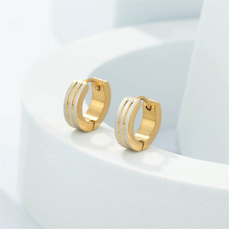 Crafted from premium stainless steel, these modern huggie earrings feature a sleek design with three textured brushed stripes. Available in a striking two-tone gold-and-silver finish or a monochromatic silver-toned option, they are hypoallergenic, lightweight, and perfect for elevating everyday style with a contemporary edge.