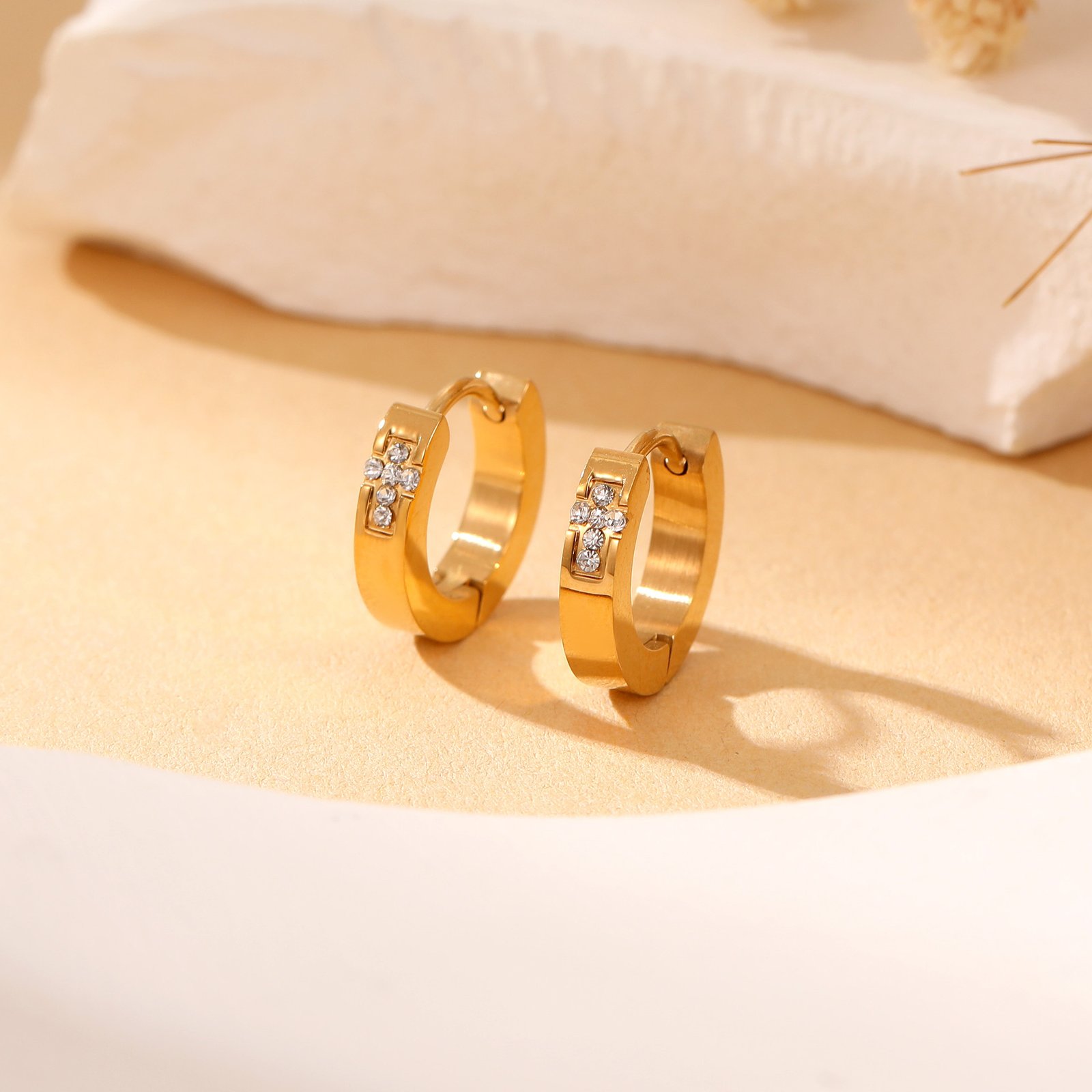Blend elegance and versatility with these luxury CZ earrings, crafted from premium gold-toned stainless steel. Each earring features delicate sparkling cubic zirconia, creating a glamorous yet stylish look. Hypoallergenic, tarnish-resistant, and lightweight, they are designed for all-day comfort. Perfect for elevating casual outfits, office looks, or special occasions—this versatile pair effortlessly complements any wardrobe, adding a touch of subtle glamour and femininity.