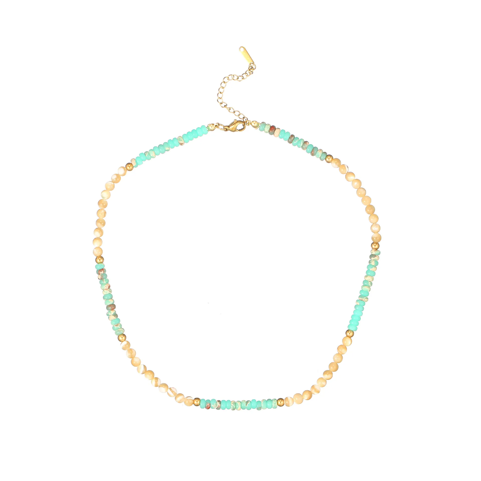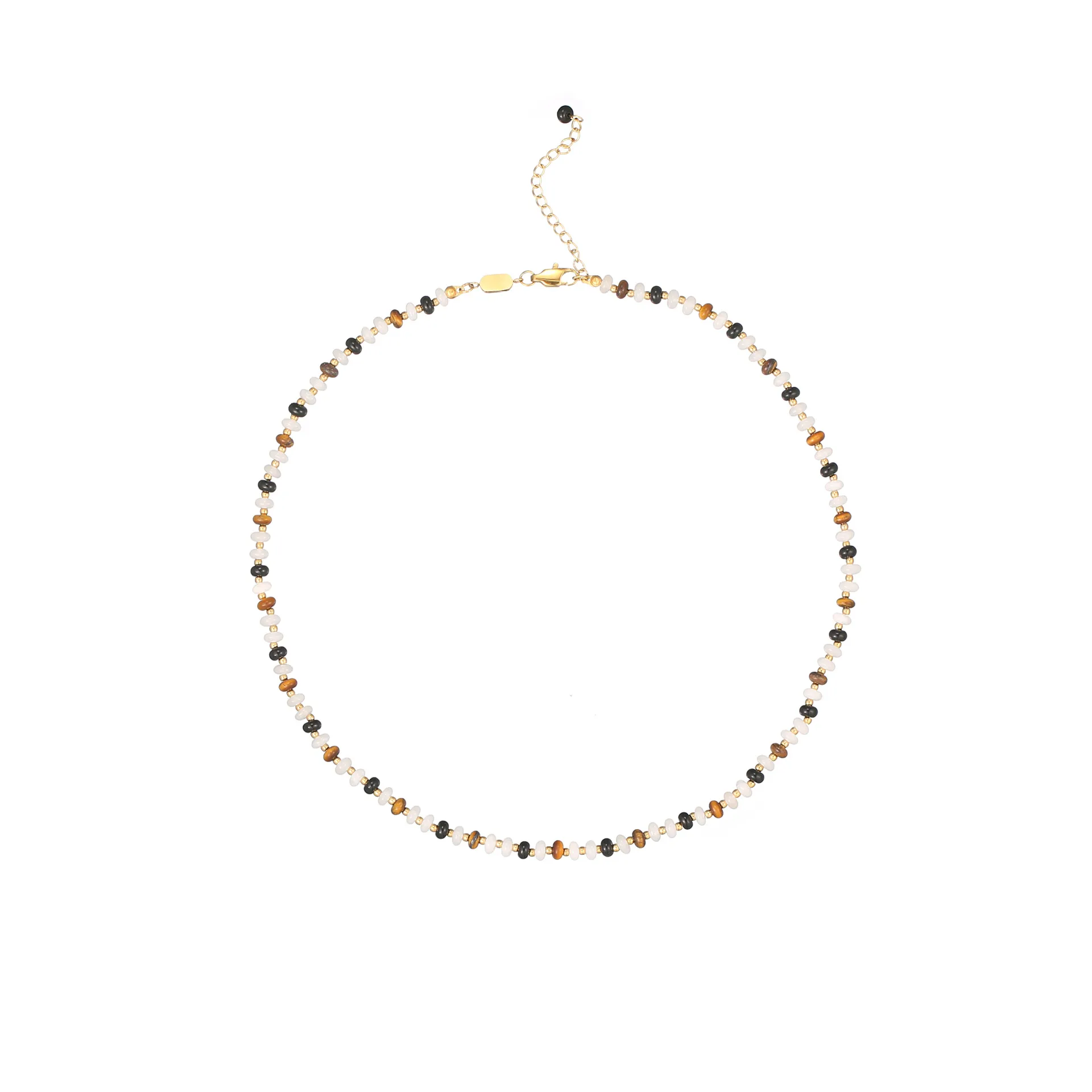 Elevate your style with this premium natural stone beaded necklace, crafted from hypoallergenic stainless steel with a durable 18K gold-plated finish. Hand-strung with premium natural stone beads (including turquoise, black agate, gold stone, and red gemstone) and delicate gold spacers, this necklace delivers a sleek, high-end look that never fades or tarnishes. Lightweight, comfortable, and versatile, it’s perfect for everyday wear, summer styling, or as a meaningful gift. This piece adds a touch of natural beauty and understated luxury to any ensemble.