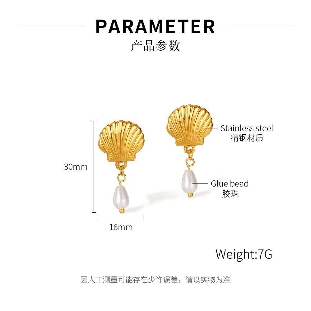 Premium hypoallergenic stainless steel set with shell, starfish, conch, and pearl accents. Tarnish-resistant, minimalist beachy design—perfect for layering and coastal styling.