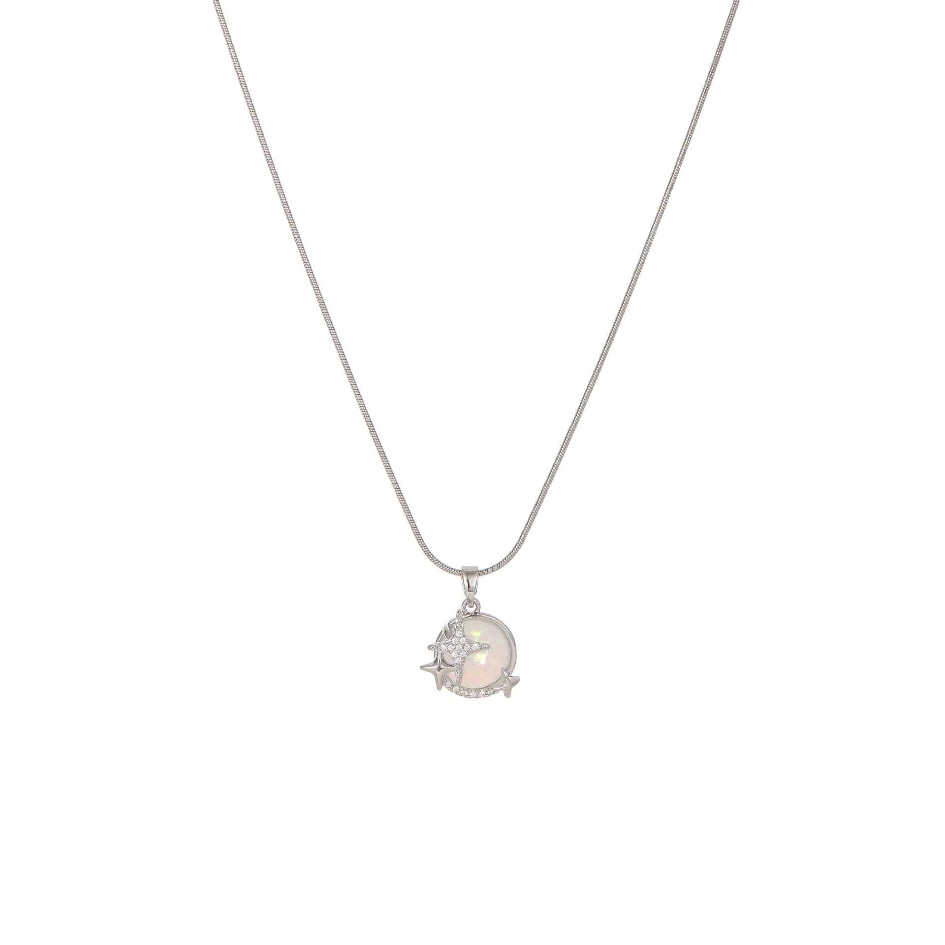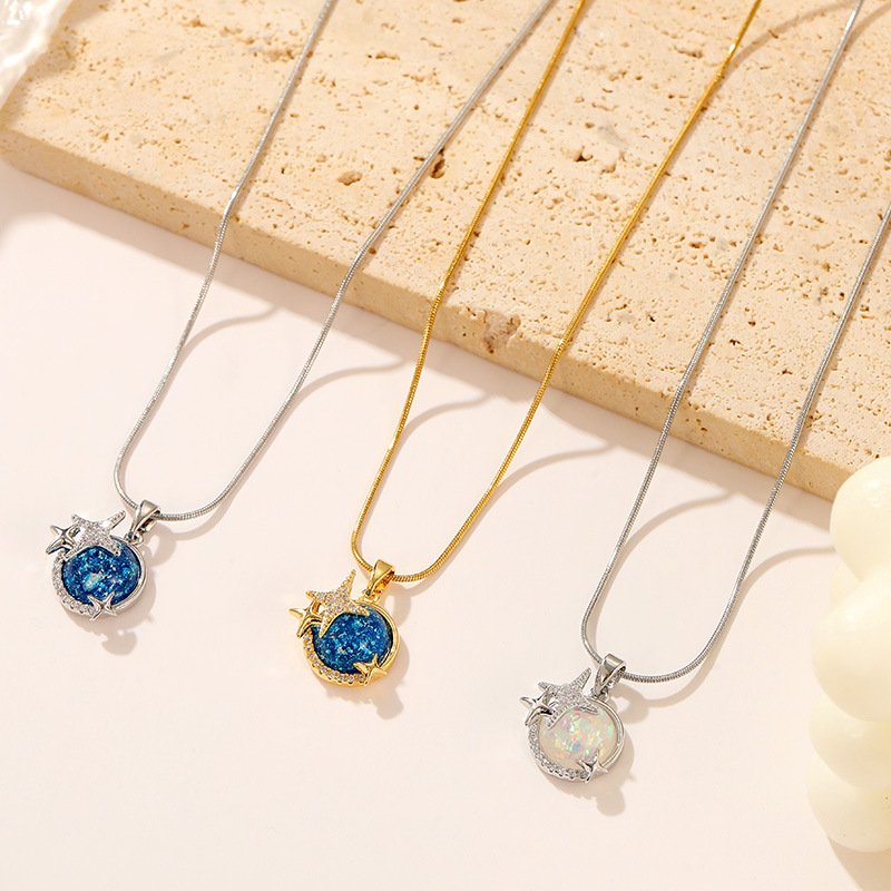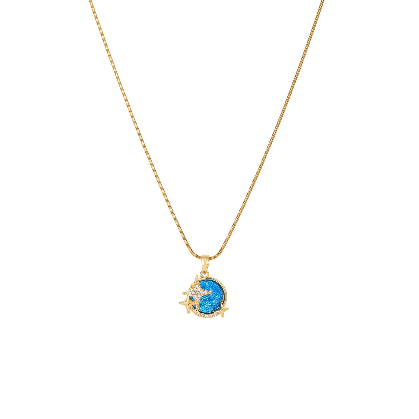 18K gold/silver-plated stainless steel necklace with a round starry ocean stone pendant and CZ star charm. Hypoallergenic, tarnish-resistant, and high-end—perfect for luxury, everyday, and celestial styling.