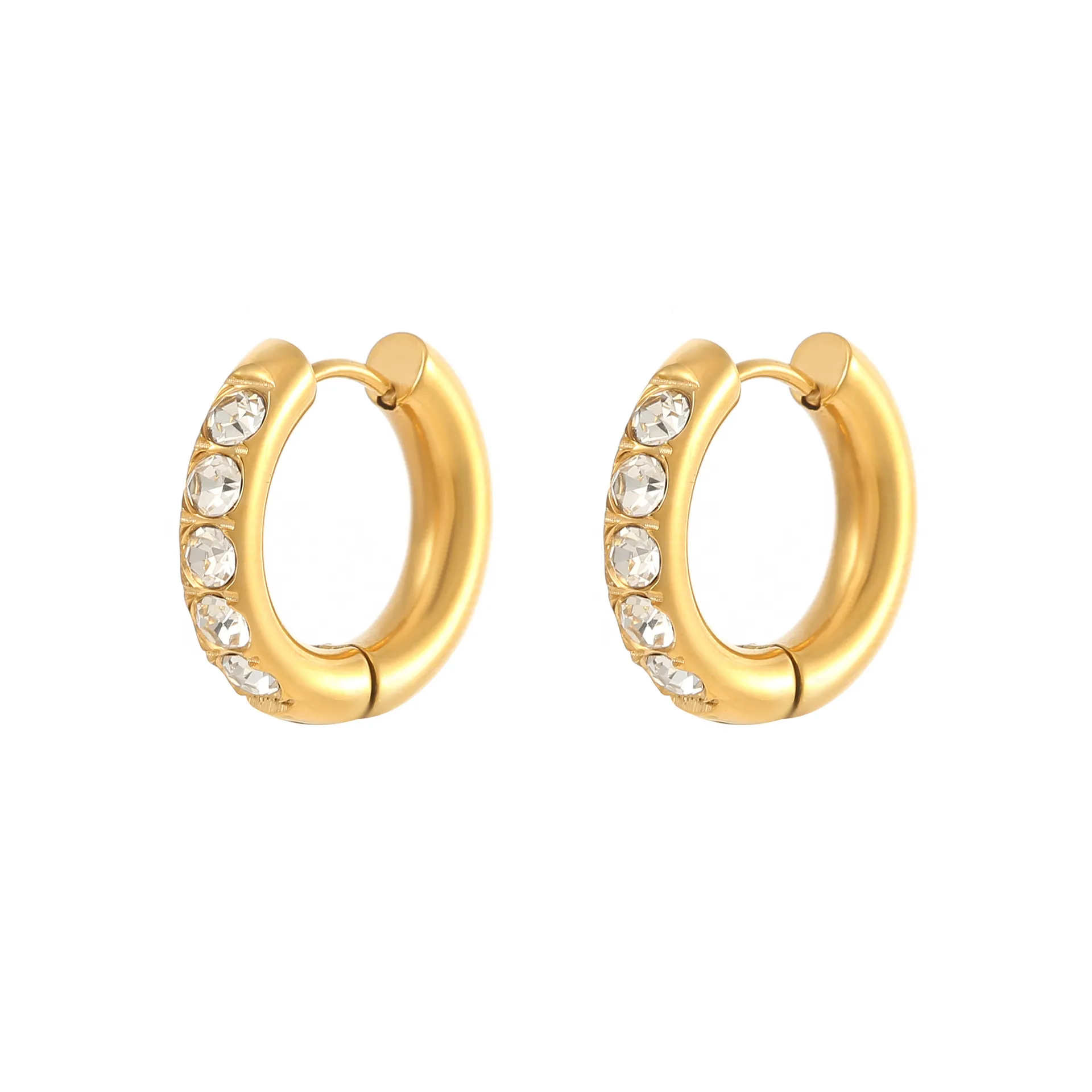 These Stainless Steel C-Hoop Earrings are the perfect blend of minimalist elegance and eye-catching sparkle, featuring a polished gold-plated base and inlaid zircon stones for a luxe finish.