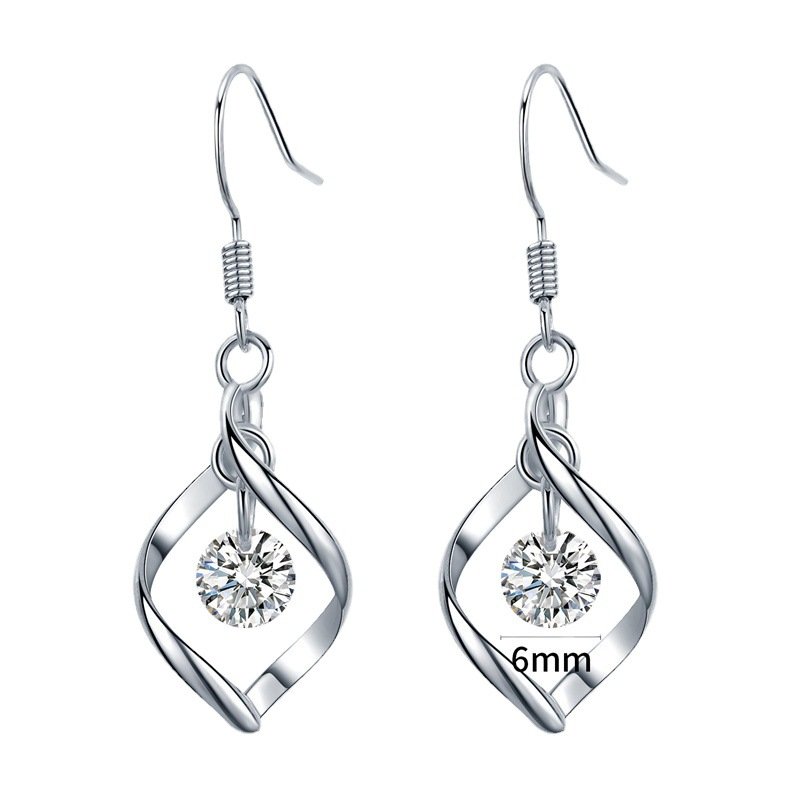 Silver-tone copper earrings with a twisted diamond frame and 6mm sparkling zircon center. Hypoallergenic, tarnish-resistant, and ideal for minimalist everyday styling.