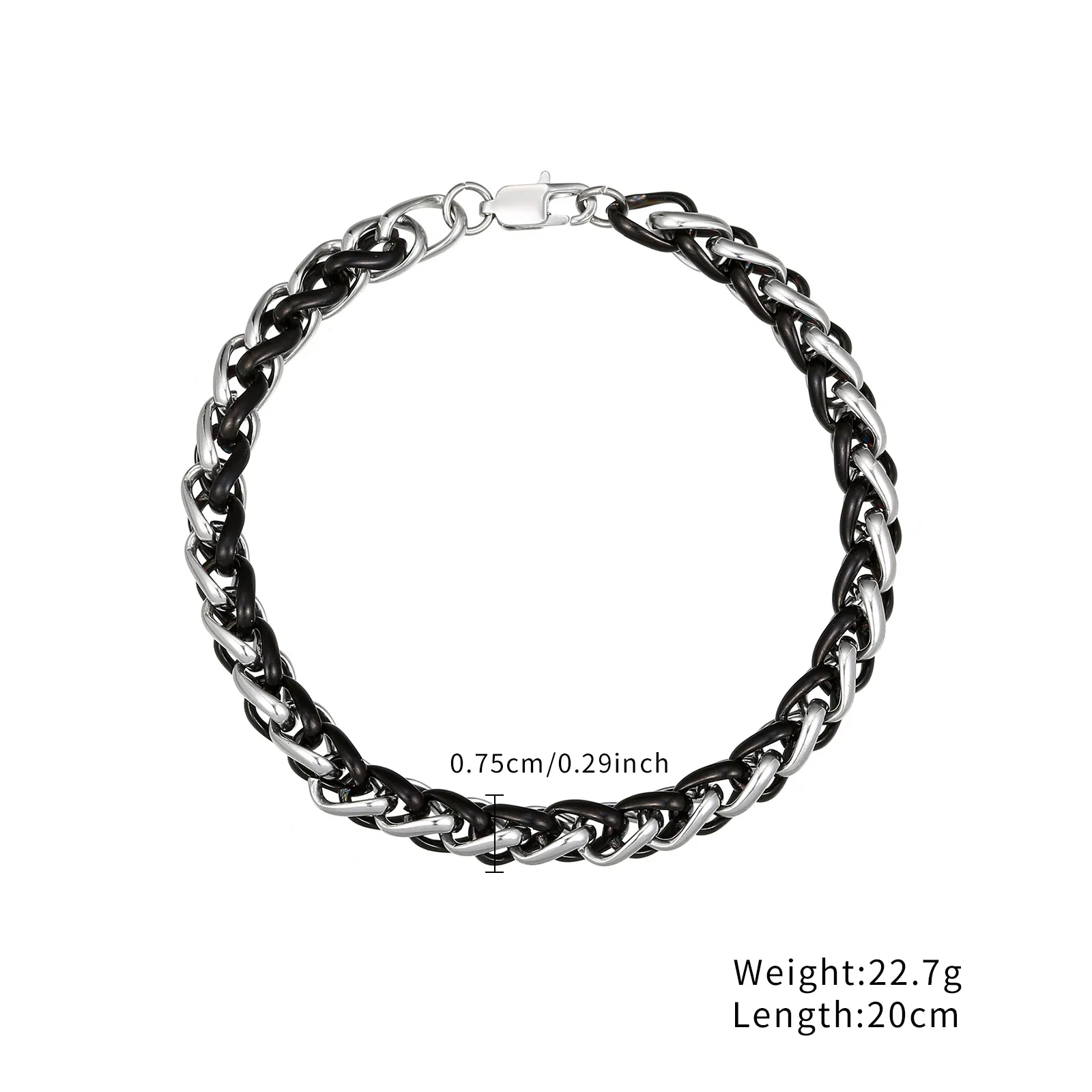 Titanium steel interwoven braided bracelet, available in black/silver and black/blue two-tone options. Hypoallergenic, tarnish-resistant, and never fades—ideal for minimalist, retro, and streetwear styling.