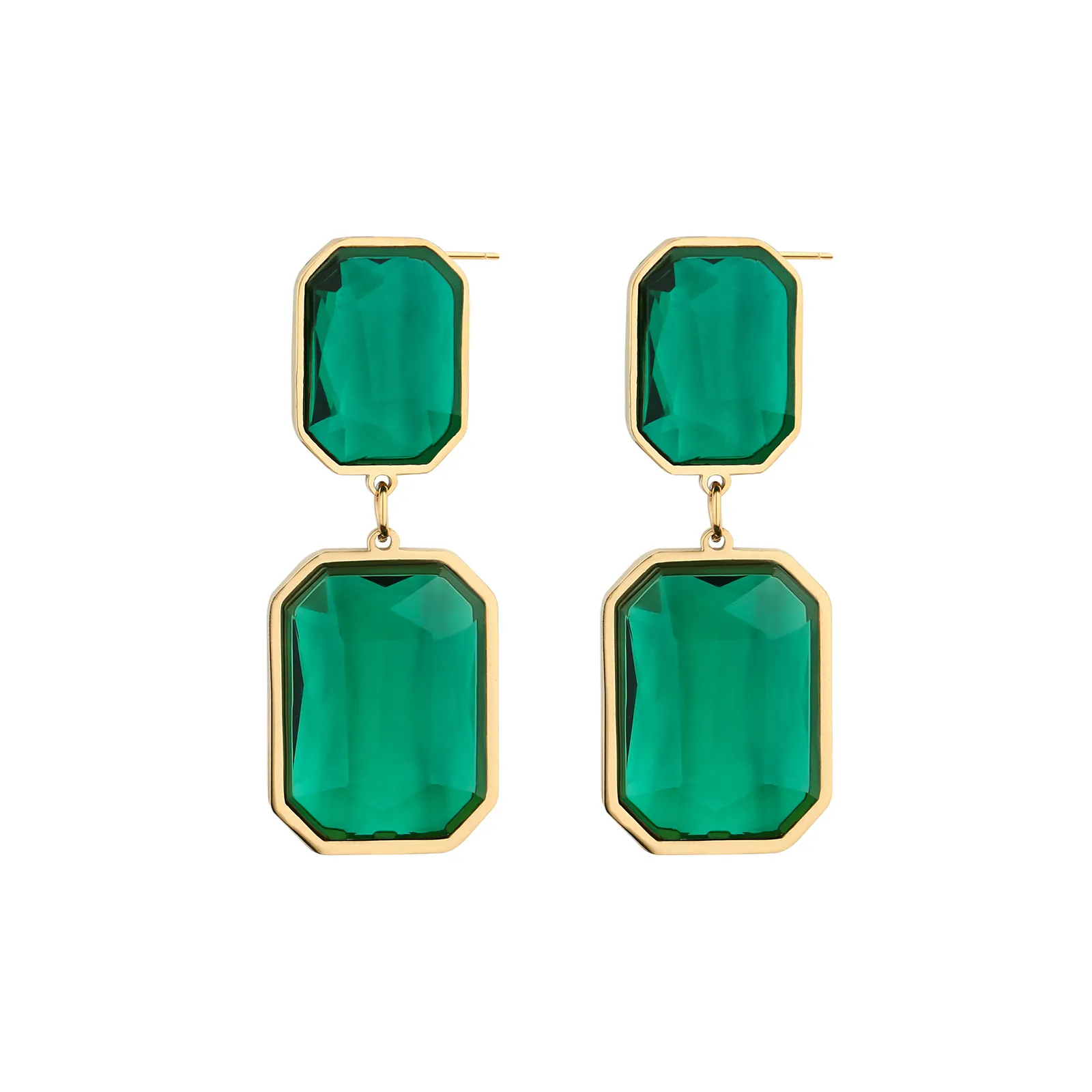 Vintage Emerald Gemstone Titanium Steel Earrings