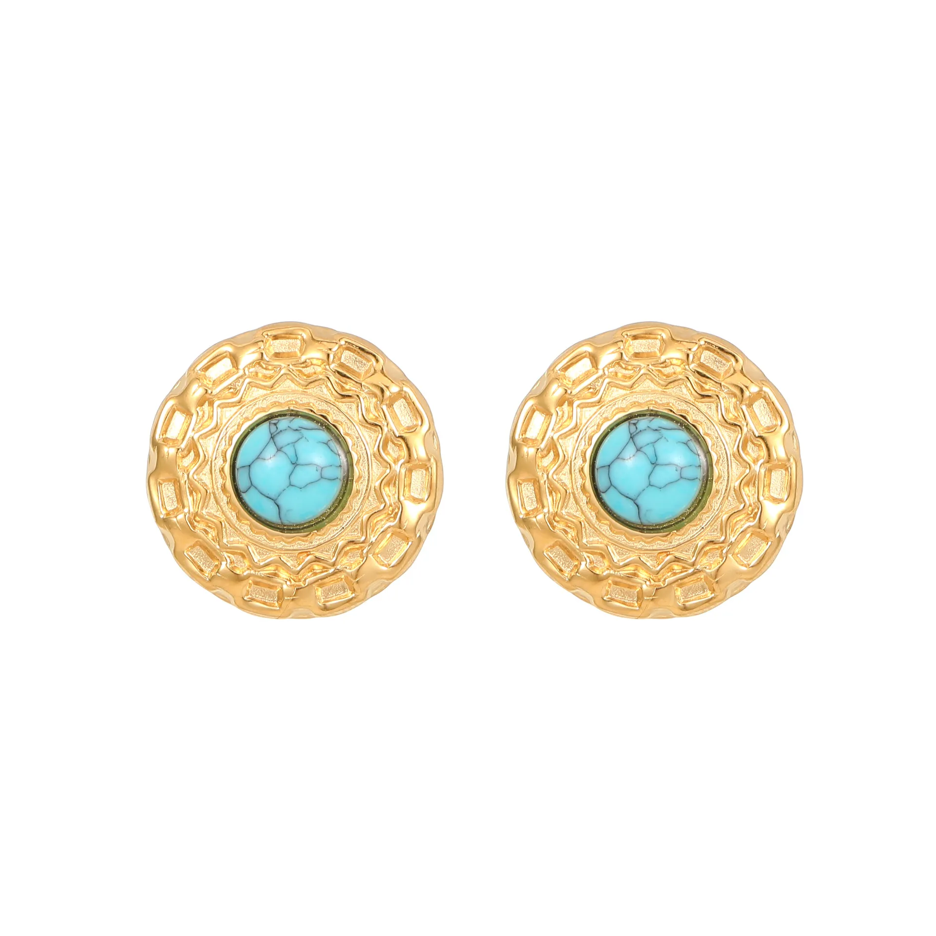Blend retro elegance and natural charm with these square green stone stud earrings, crafted from premium gold-toned stainless steel. Each earring features a textured hammered gold frame, enclosing a smooth square green stone with subtle natural veining, evoking the serene beauty of natural turquoise. Hypoallergenic, tarnish-resistant, and lightweight, they are designed for all-day comfort. Perfect for elevating casual outfits, office looks, or special occasions—this versatile pair effortlessly complements any wardrobe, adding a touch of earthy glamour and timeless sophistication.